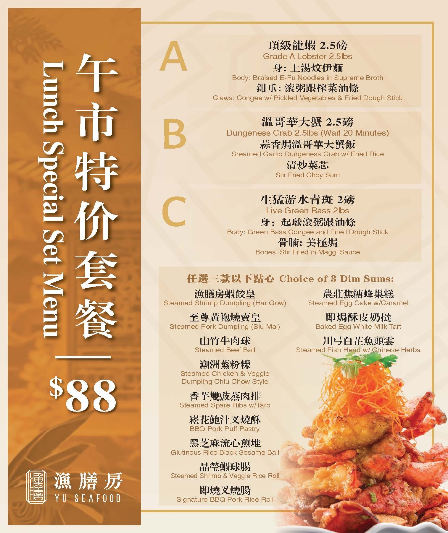 Yu Seafood, our culinary journey is an ode to the bounties of the sea, where every dish tells a story of freshness, creativity, and a deep-rooted love for seafood in all its forms. From the raw simplicity of sushi and sashimi to the savory delights of Chinese-style lobster and dim sum, our culinary offerings are a testament to our commitment to delivering an extraordinary seafood dining experience.